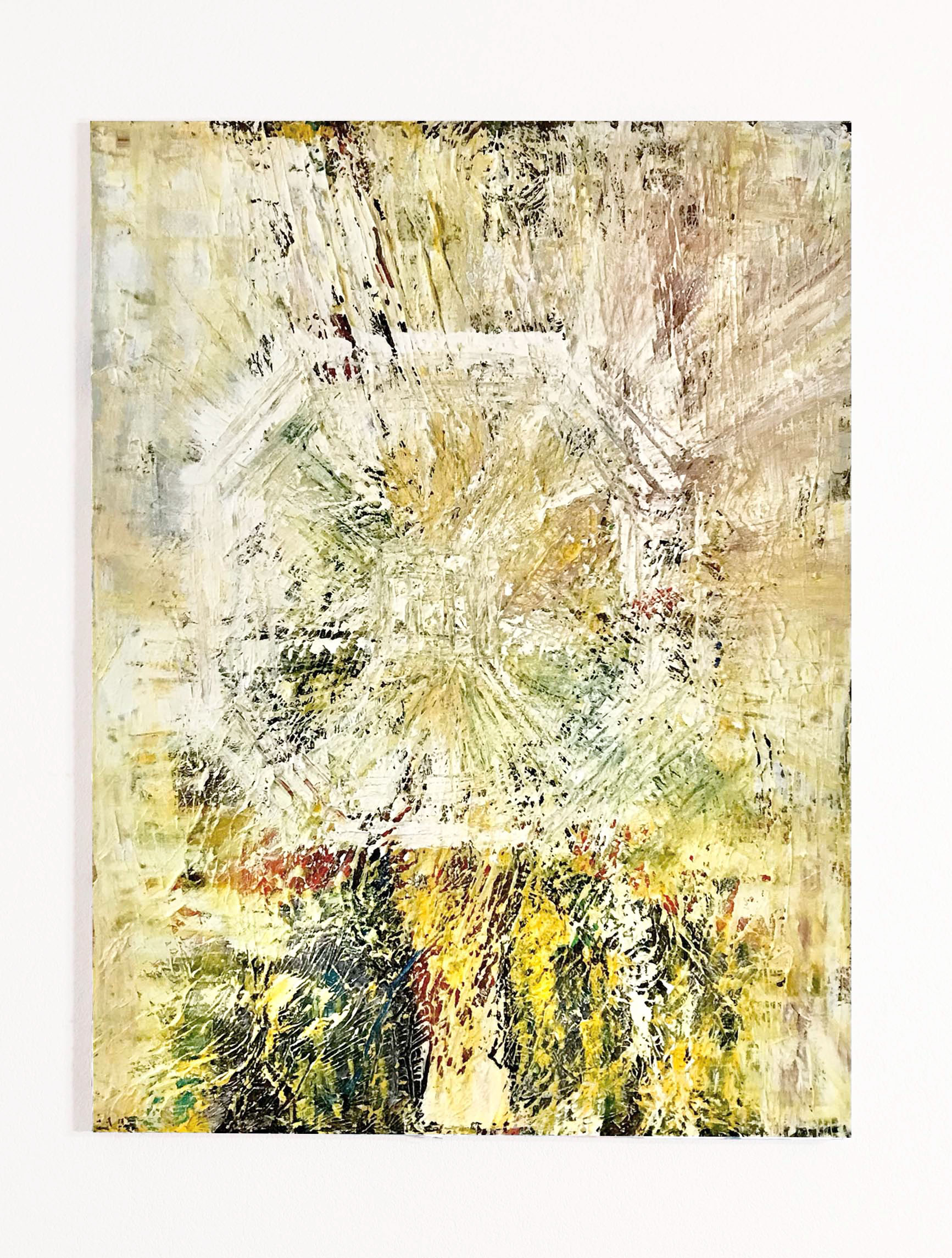 Between 2022 and 2024, a series of paintings with a dense materiality was created: "Complétude". It was born of a visceral need to come into contact with a mystery, and resulted in numerous paintings superimposed on the same canvas. This quest first turned towards an elusive mystery in spiritually-charged architectural and natural settings, and then led to explore the depths of being, between corporality and immateriality.